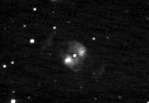 Planetaria Oggetto debole. Le sue dimensioni angolari impongono, per poterlo vedere, telescopi abbastanza aperti e con focali lunghe. Si riesce ad intravedere (se il cielo lo permette) le due nebulosità esterne speculari lobate. Sono necessari oculari a corta focale e di ottima fattura. Per poterne evidenziare la sua struttura si è resa necessaria una elaborazione piuttosto spinta, che ne hanno determinato le evanescenti line orizzontali visibile nell'immagine Distanza : 4.400 a.l. circa Mag. : 13.00. Altri nomi dell'oggetto : PK 189+19.1 Diametro angolare : 55 secondi d'arco Magnitudine dell'oggetto : 13.0. Stella centrale di mag : 14.8 Immagine ottenuta dalla somma di 30 pose della durata di 40 secondi ciascuna. Elaborate con stretching logaritmico Elaborazione e montaggio di GianPaolo Pizzetti con il programma CCD_IMG |