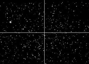 visibili anche con telescopi modesti. M38 è forse il più spettacolare. All'oculare del telescopio si rivela come un bel concentrato di stelle tutte più o meno uguali. Purtroppo questi ammassi non sono un campo in cui i CCD sono favoriti; le loro dimensioni impongono camere CCD particolarmente "generose" in dimensioni e come potete vedere l'immagine non è certo quella delle nebulose in cui i CCD sono nettamente favoriti. Eta': 220.000.000 anni Diametro 25 primi d'arco. Diametro reale 29 a.l. L'immagine è il risultato di un mosaico di 4 immagini affiancate ognuna risultante dalla somma di 5 riprese della durata di 60 secondi. Immagini elaborate con stretching logaritmico e filtro di convoluzione. Elaborazioni e montaggio di GianPaolo PIZZETTI. |